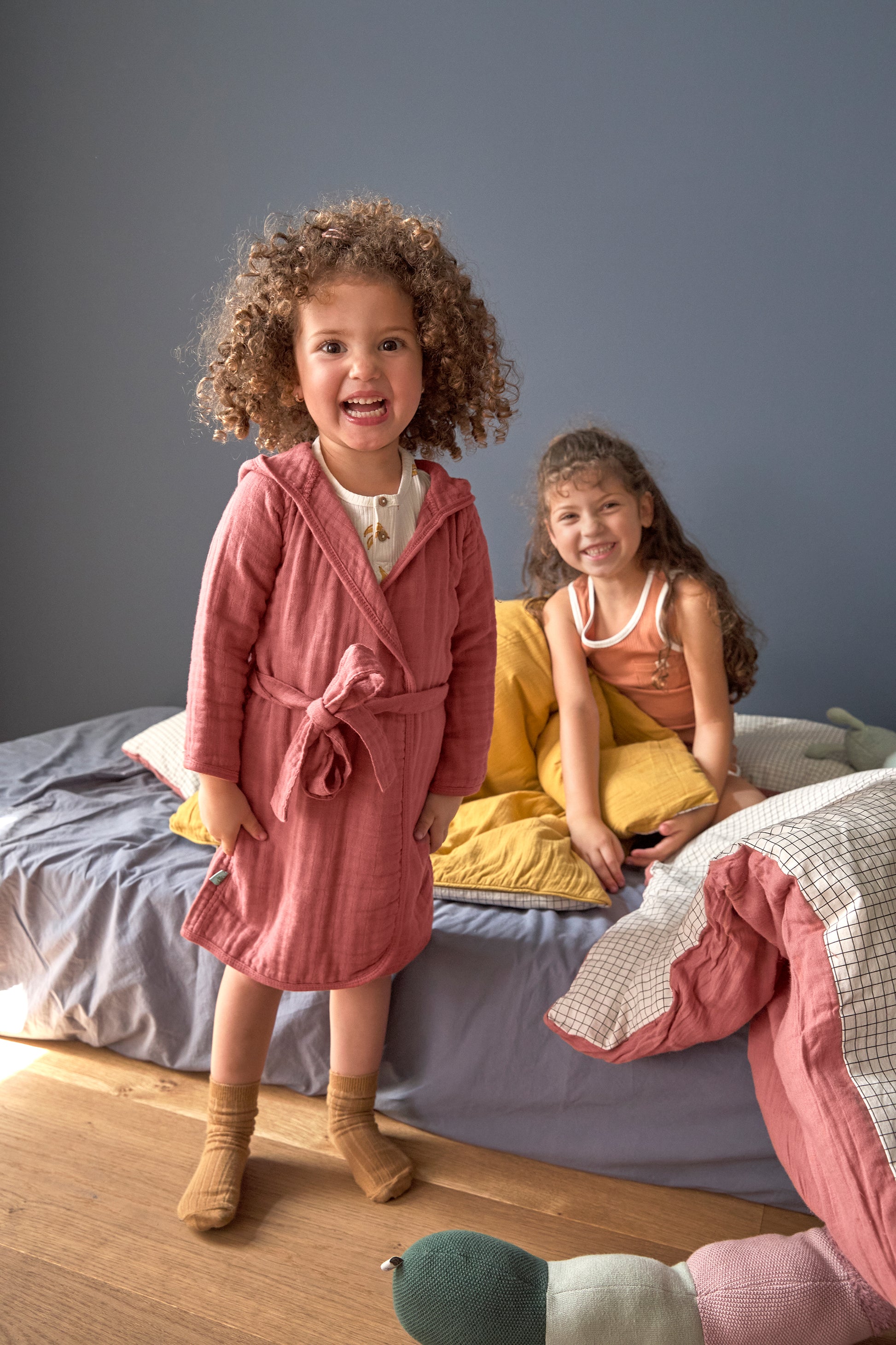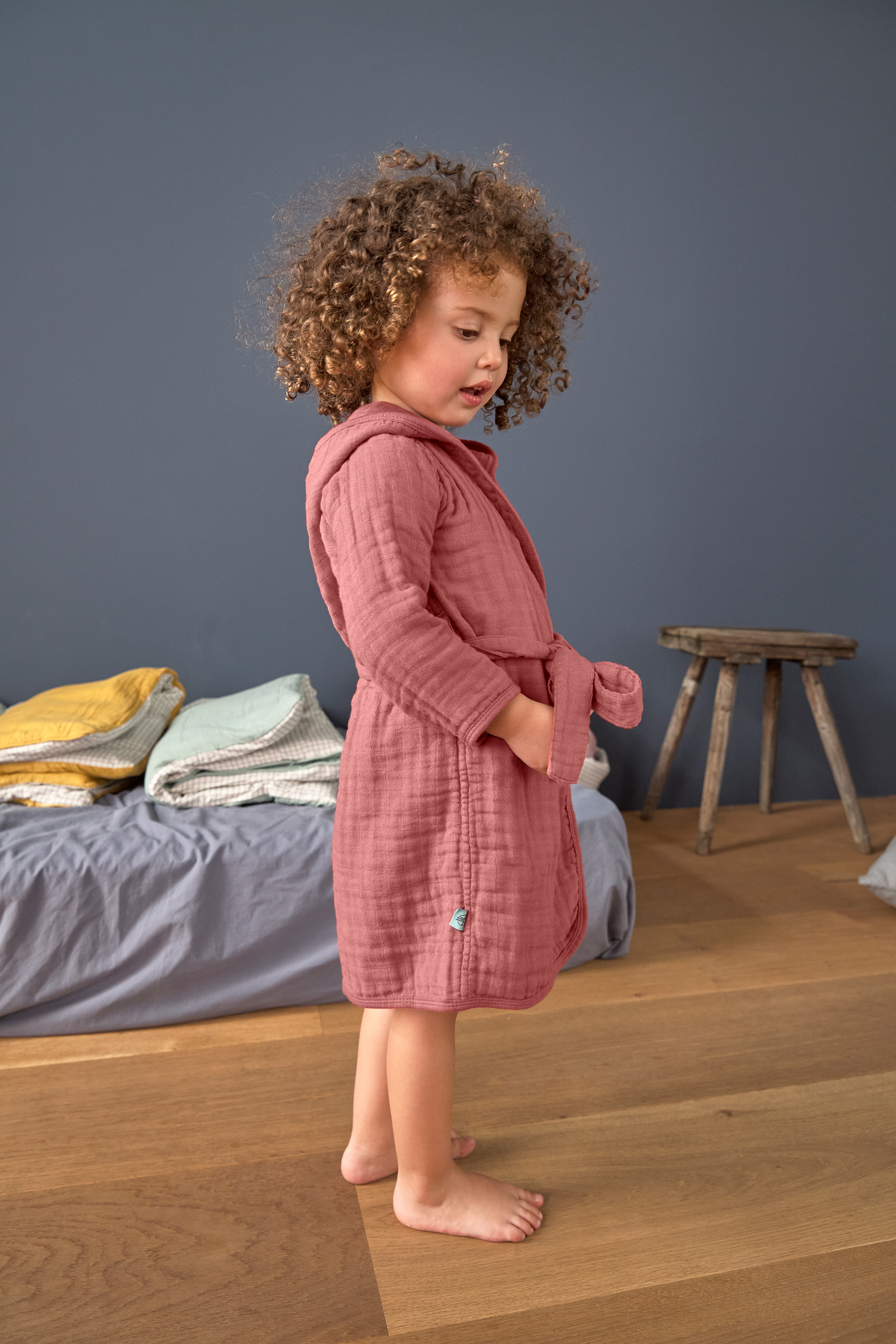 Deze kinderbadjassen van gaas garanderen ook voor jonge ontdekkers een behaaglijk gevoel, of ze nu thuis zijn of niet.