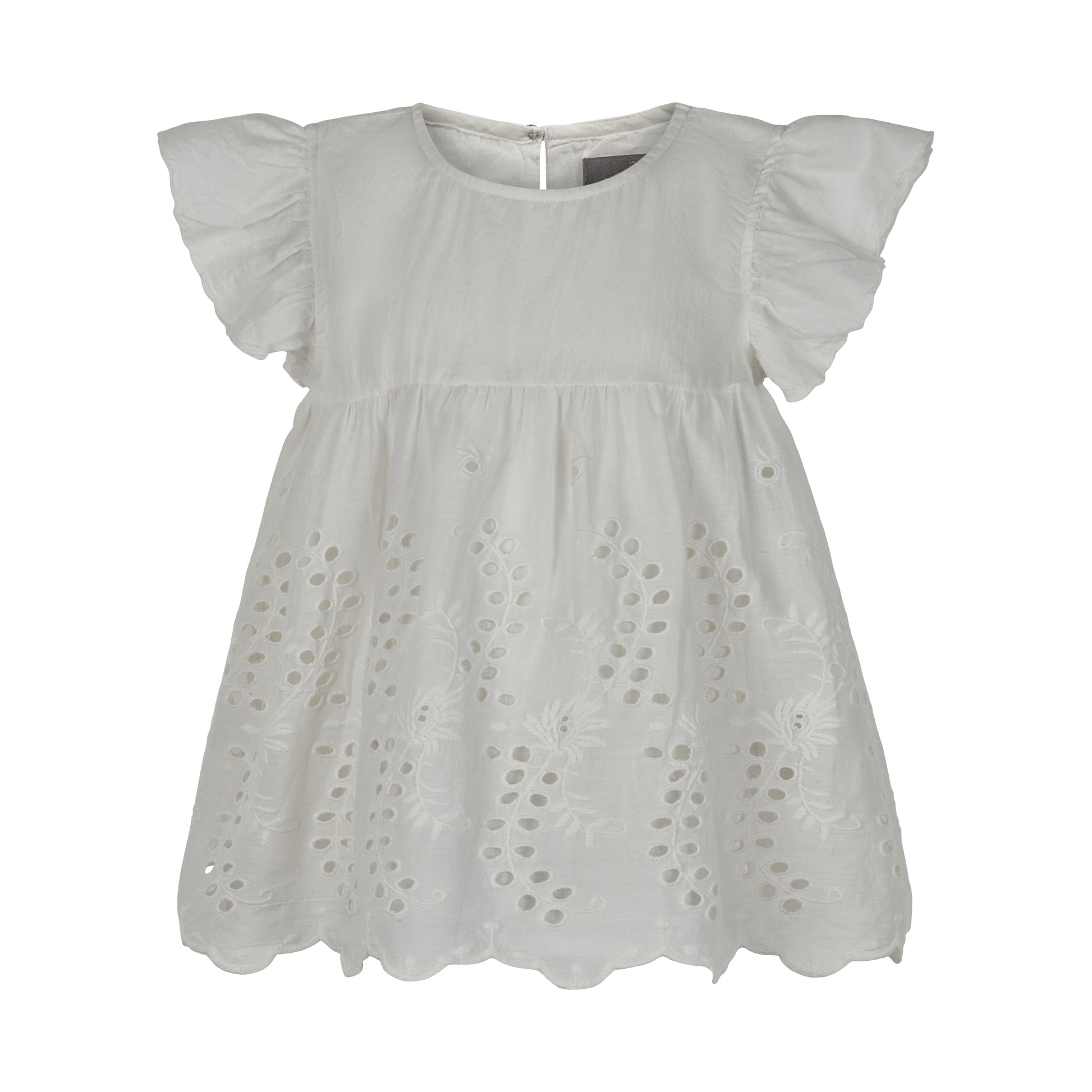 Top van Creamie met mooie broderie anglaise over de hele onderzijde. Franje mouwen. Knoopsluiting op de rug. Gemaakt van 100 % katoen.