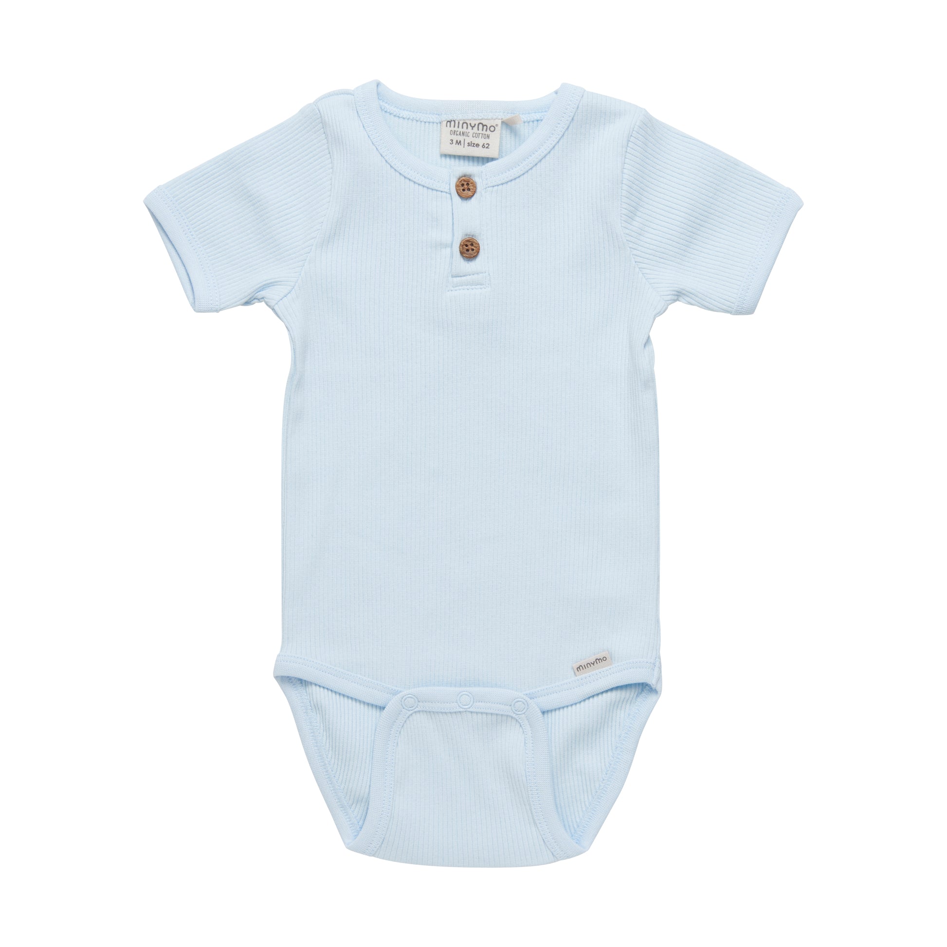 Body met korte mouwen in effen gekleurd biokatoen rib van Minymo.