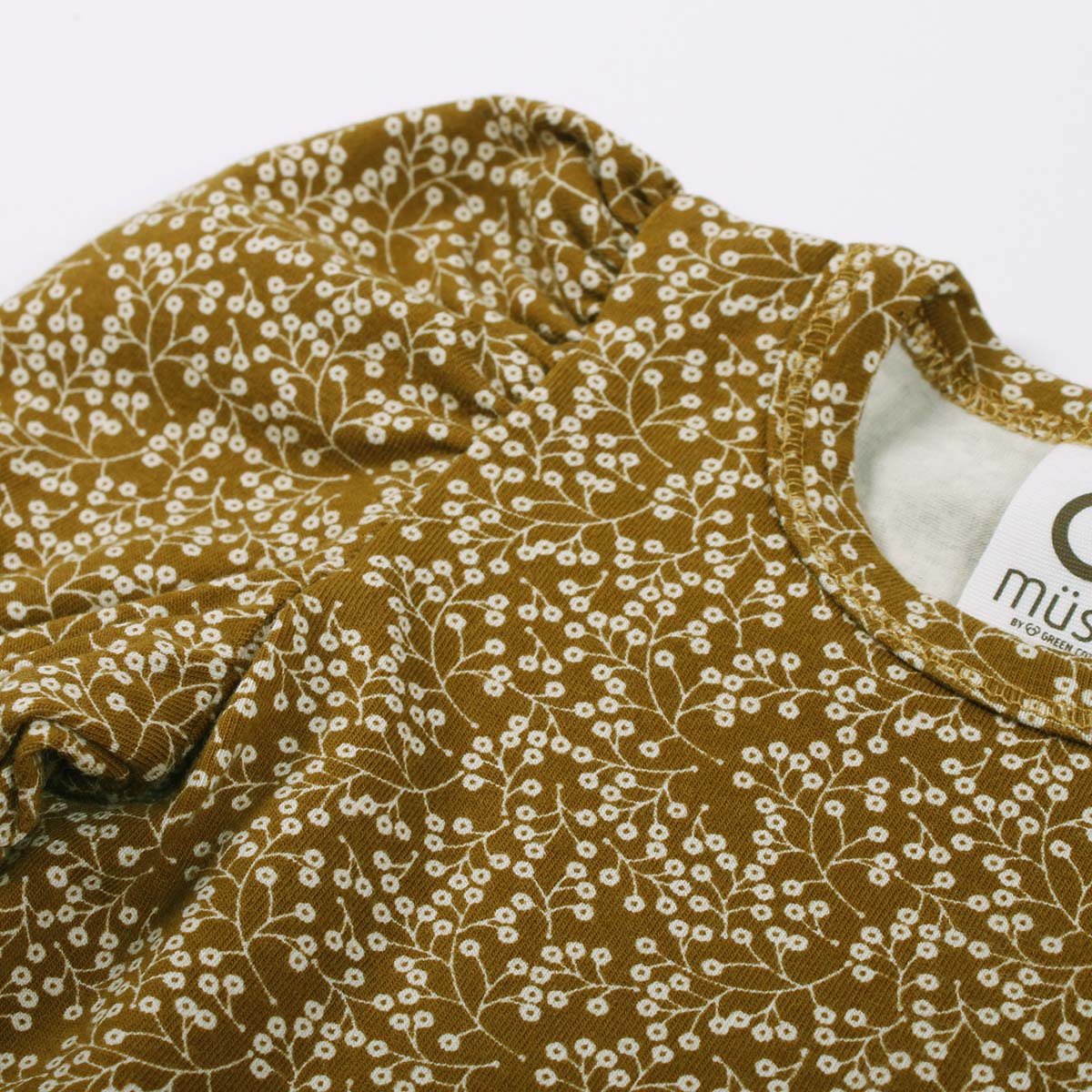 Schattig lijfje met pofmouwtjes en print van groene tinten bloemen.