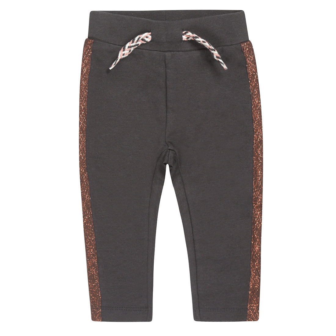 Leuke jogging broek met glitter strook aan de zijkant van elke pijp