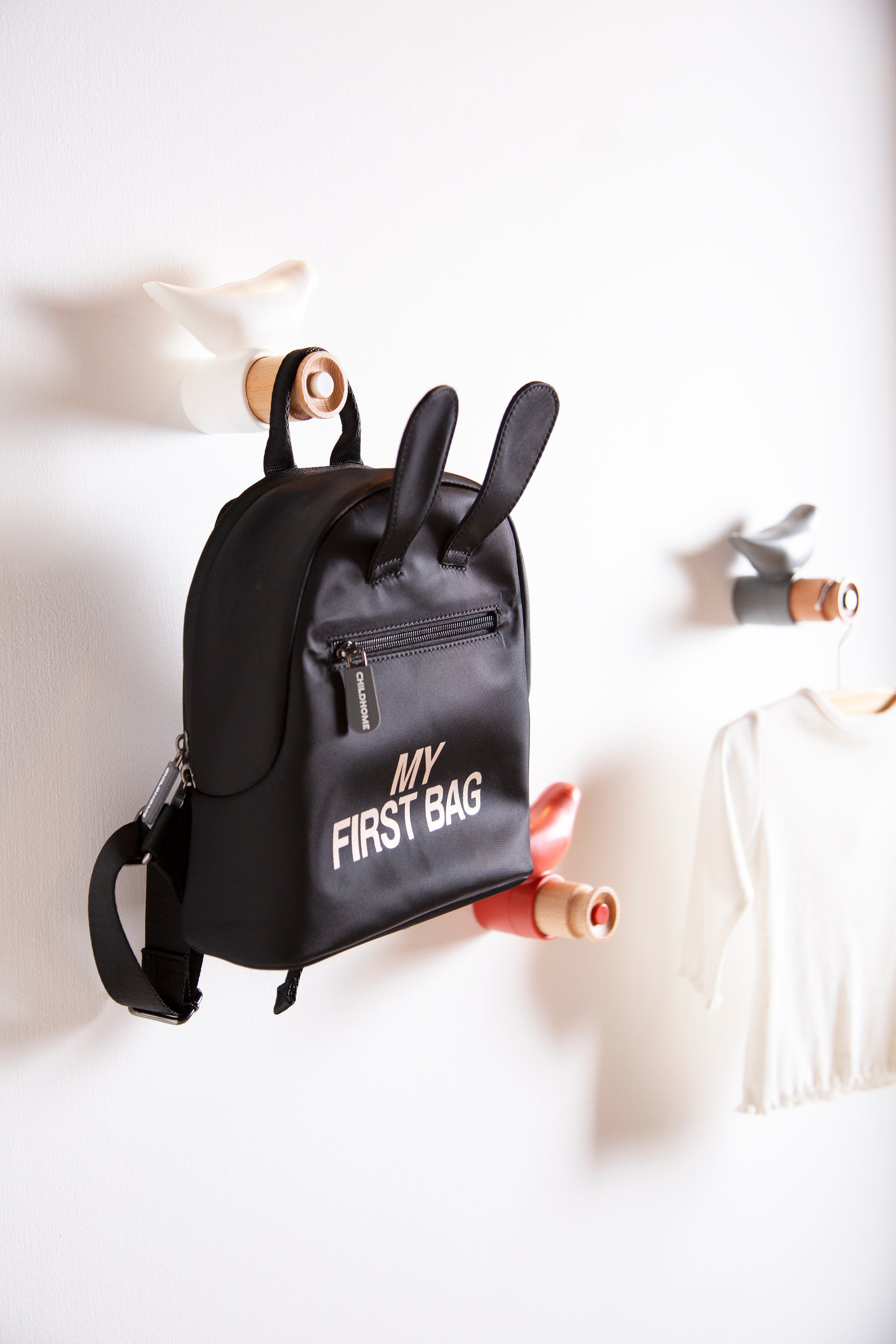 De Mommy Bag familie groeit! Zie hier de My First Bag kinderrugzak in zwart! Dit eerste rugzakje voor jouw kleintje past bij de grote Mommy Bag van mama. Het grootste vak is groot genoeg voor een broodtrommel en drinkbusje en in het kleine vak kan je kindje nog zijn/haar favoriete spulletjes meenemen. De afneembare en verstelbare veiligheidsgesp zorgt ervoor dat de rugzak altijd comfortabel aanvoelt en goed blijft zitten! De My First Bag rugzakjes voor peuters zijn ook beschikbaar in andere kleuren.