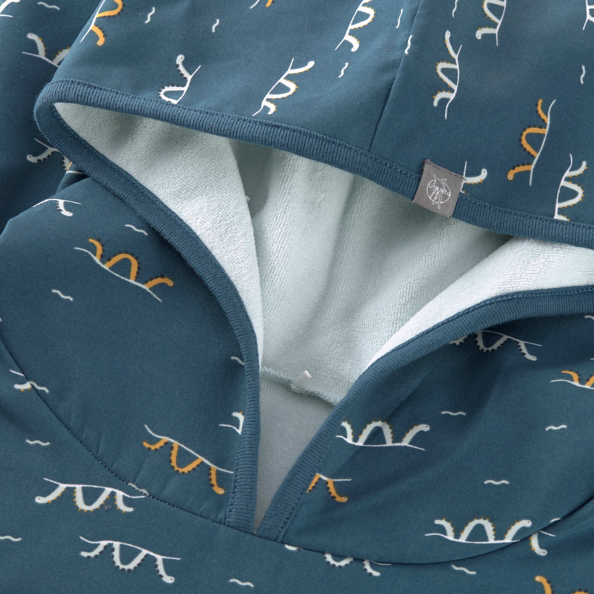 Deze veelzijdige strandponcho komt goed van pas op het strand en in het zwembad. Na het spetteren houdt hij de kinderen heerlijk warm en biedt hij een betere bescherming tegen de wind dankzij de dicht geweven microvezel aan de buitenkant. Met een beschermingsfactor van 80 beschermt de dubbellaagse handdoek de kinderhuid bovendien tegen UV-stralen.