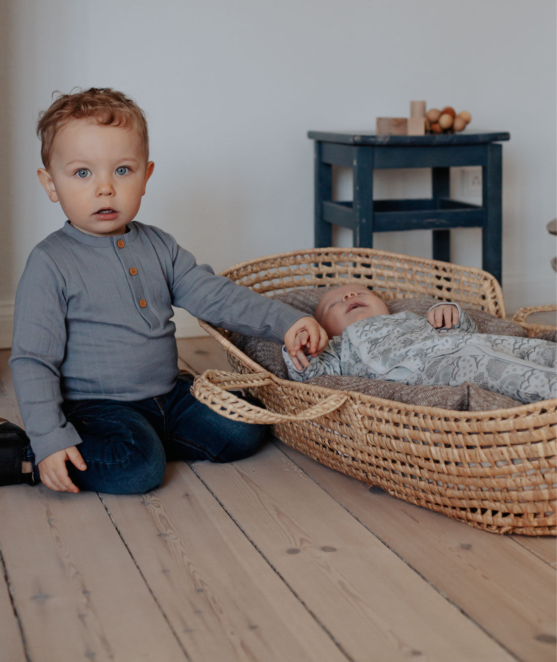 Zachte ribboorden en drukknoopjes aan de voorkant die doorlopen over één been. Verkrijgbaar in meerdere kleuren, de meisjes variant heeft franjes op de schouders.