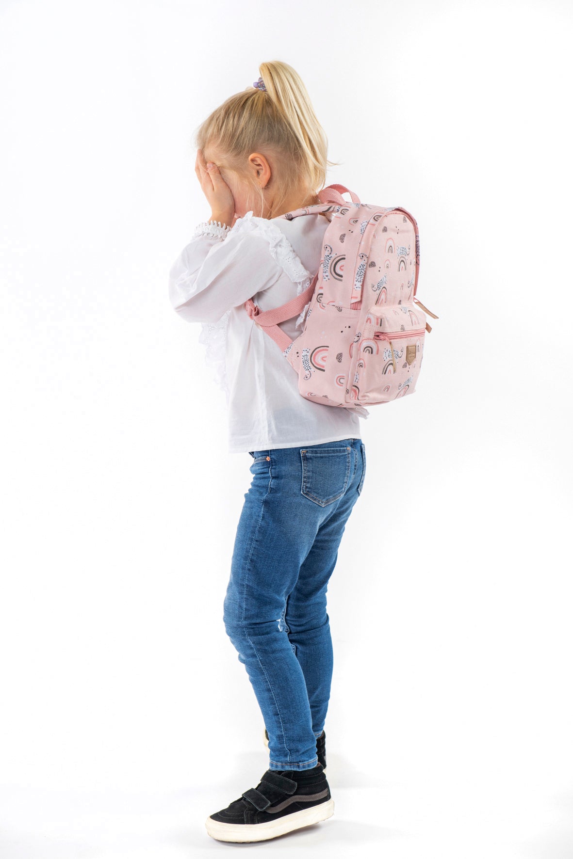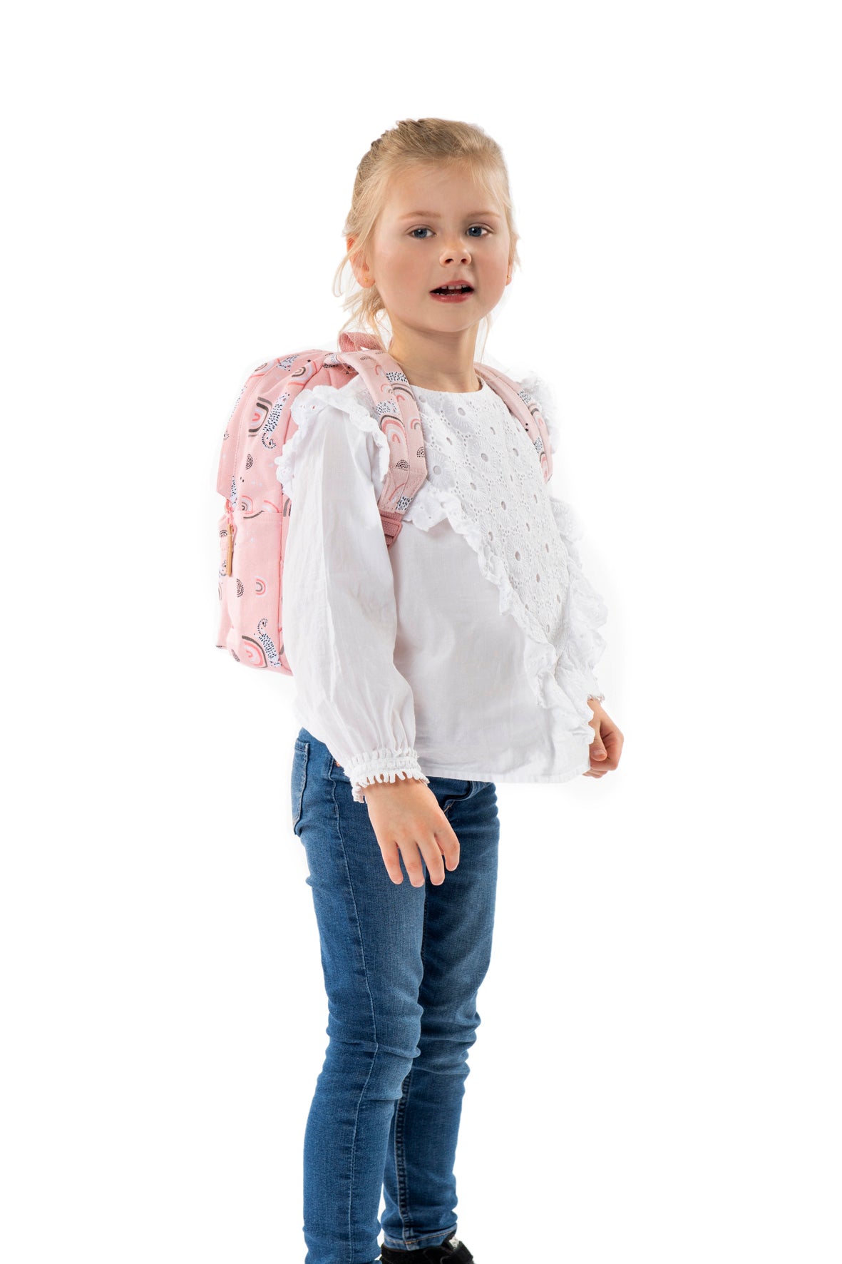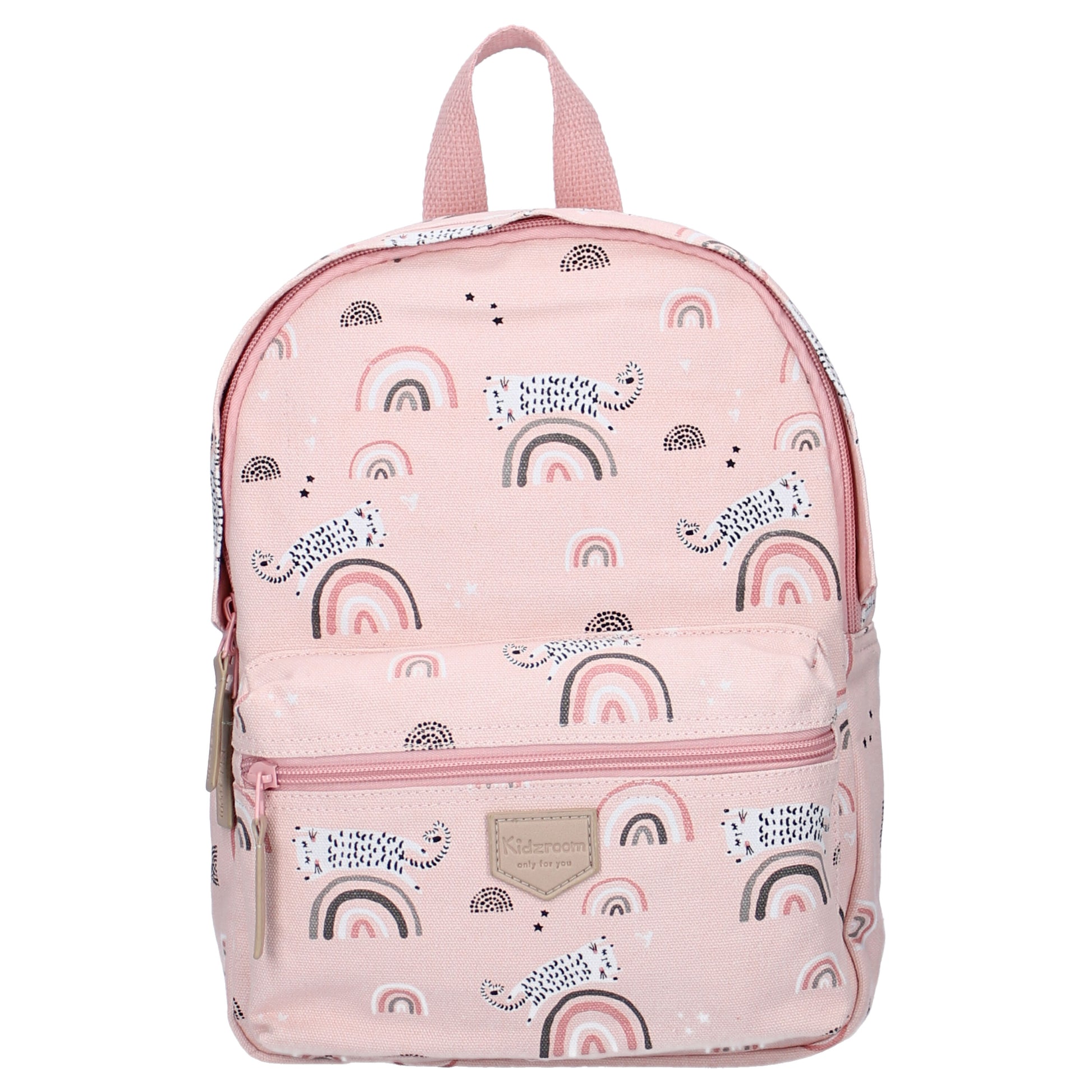 Deze roze Kidzroom rugzak is perfect voor jouw kleine om mee te nemen naar school, een dagje weg of tijdens een logeerpartijtje bij opa en oma. Deze Kidzroom rugzak is roze en heeft een lieve print met katten en regenboogjes. De tas heeft een ruim hoofdvak waar je schoolspulletjes, een lunchbox en een drinkbeker in kwijt kan. De schouderbanden zijn in lengte verstelbaar en met de lus hang je tas gemakkelijk op.