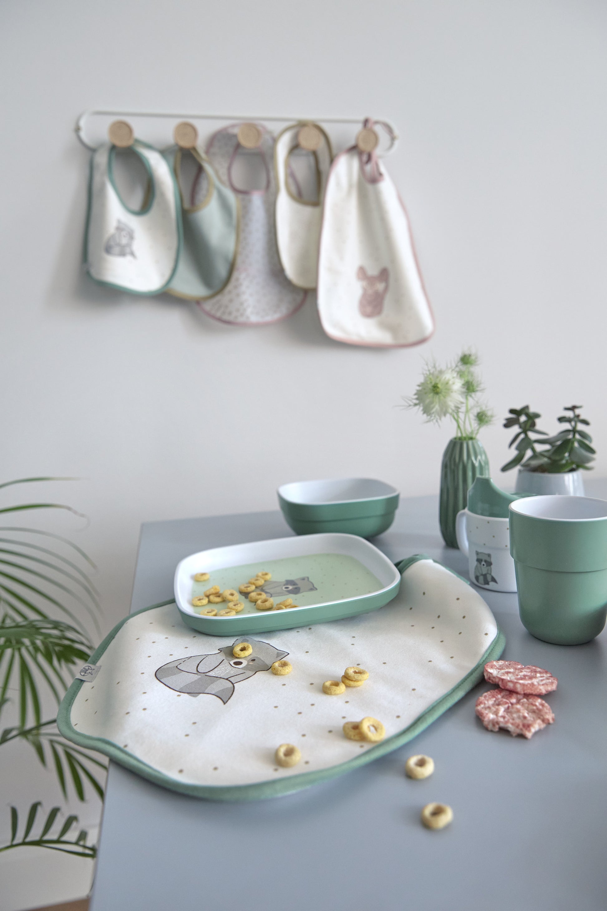De slabbetjes zijn bijzonder zacht, absorberend en hebben een waterafstotende binnenvoering: Zo blijft de kleding eronder droog en schoon als kinderen gevoed worden of zichzelf voeden.