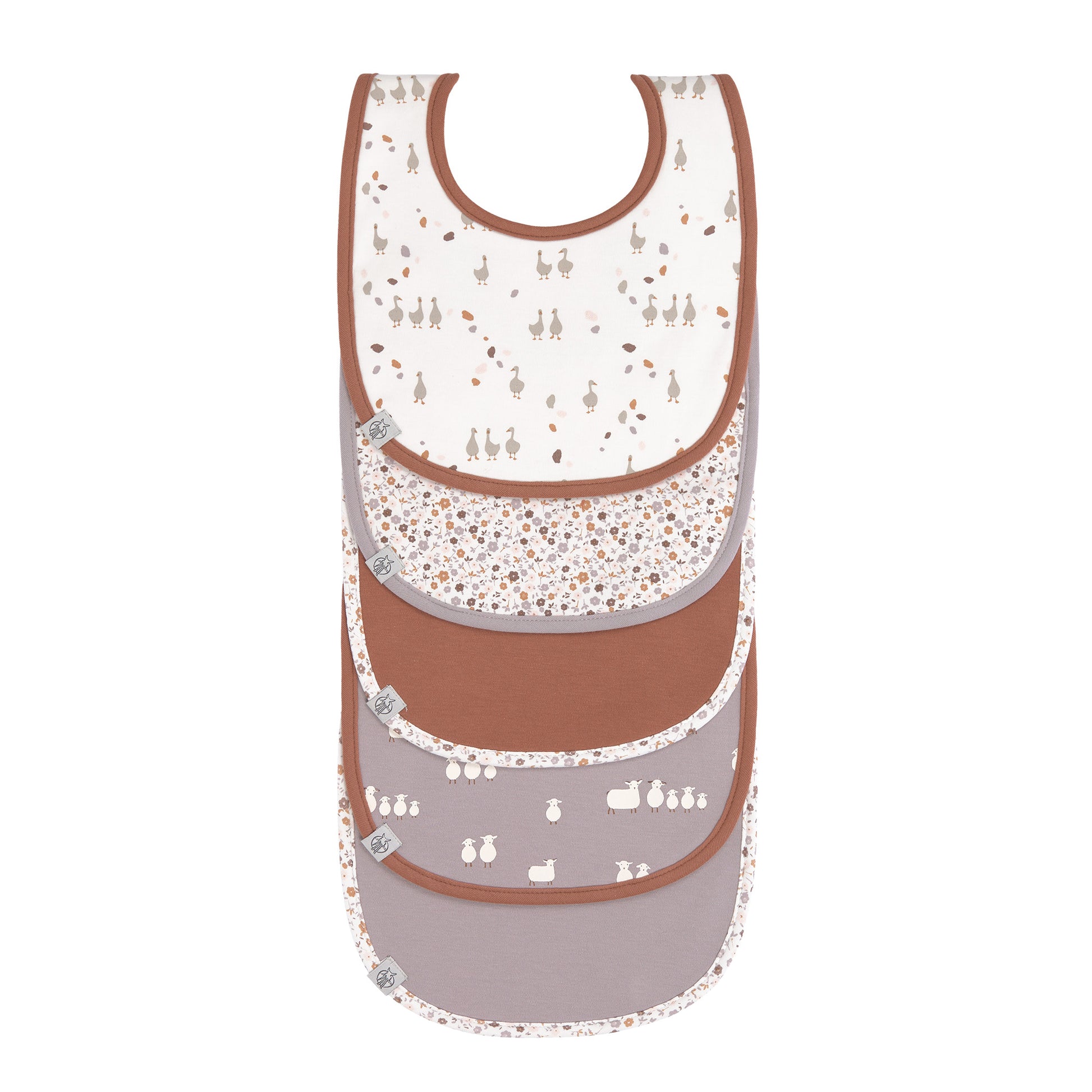 Met deze praktische sets van vijf slabbetjes uit de Tiny farmer Collection van LÄSSIG kunnen kleine lekkerbekjes hun eten morsen zonder spijt te krijgen - zelfs meerdere keren.