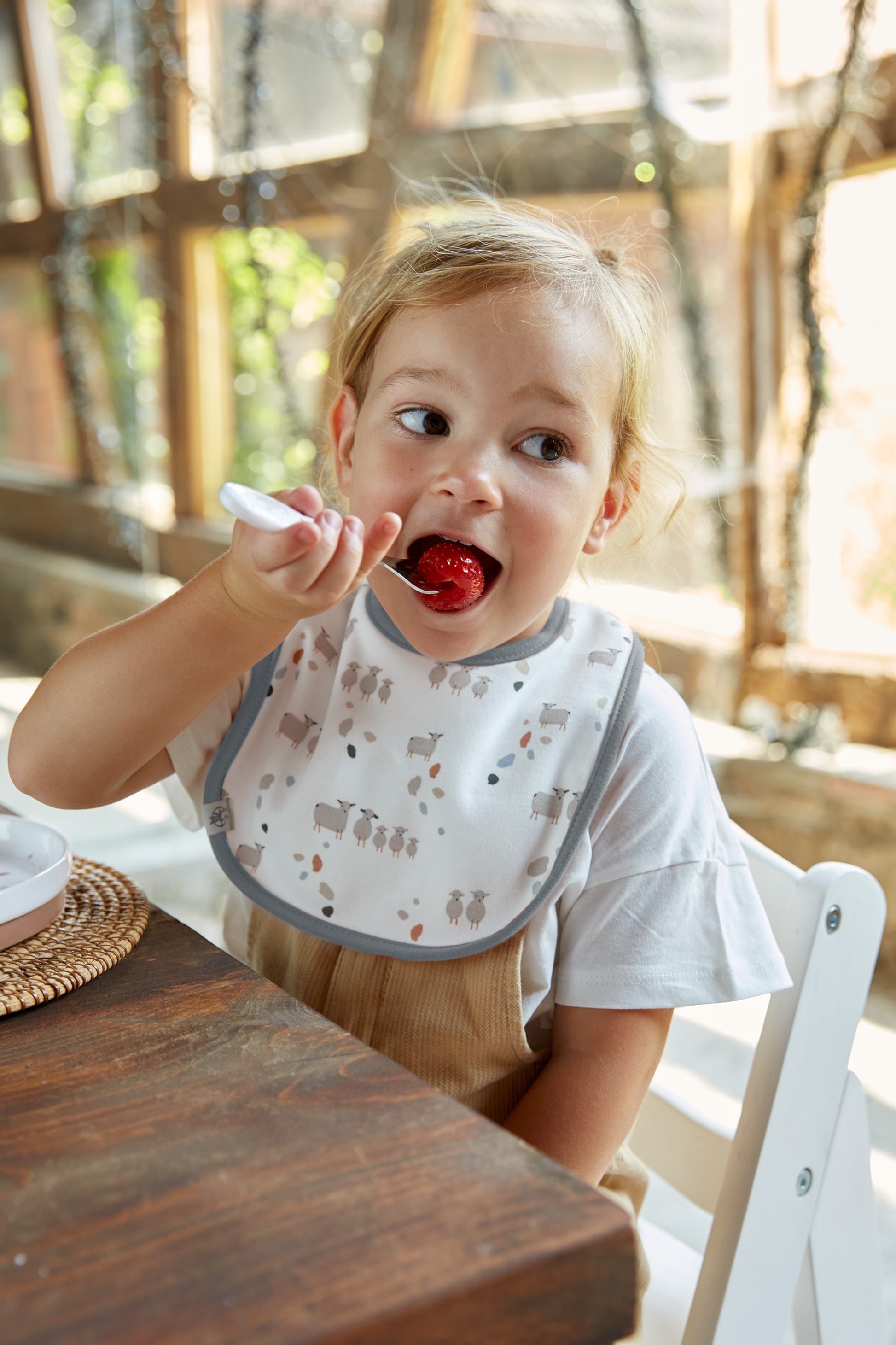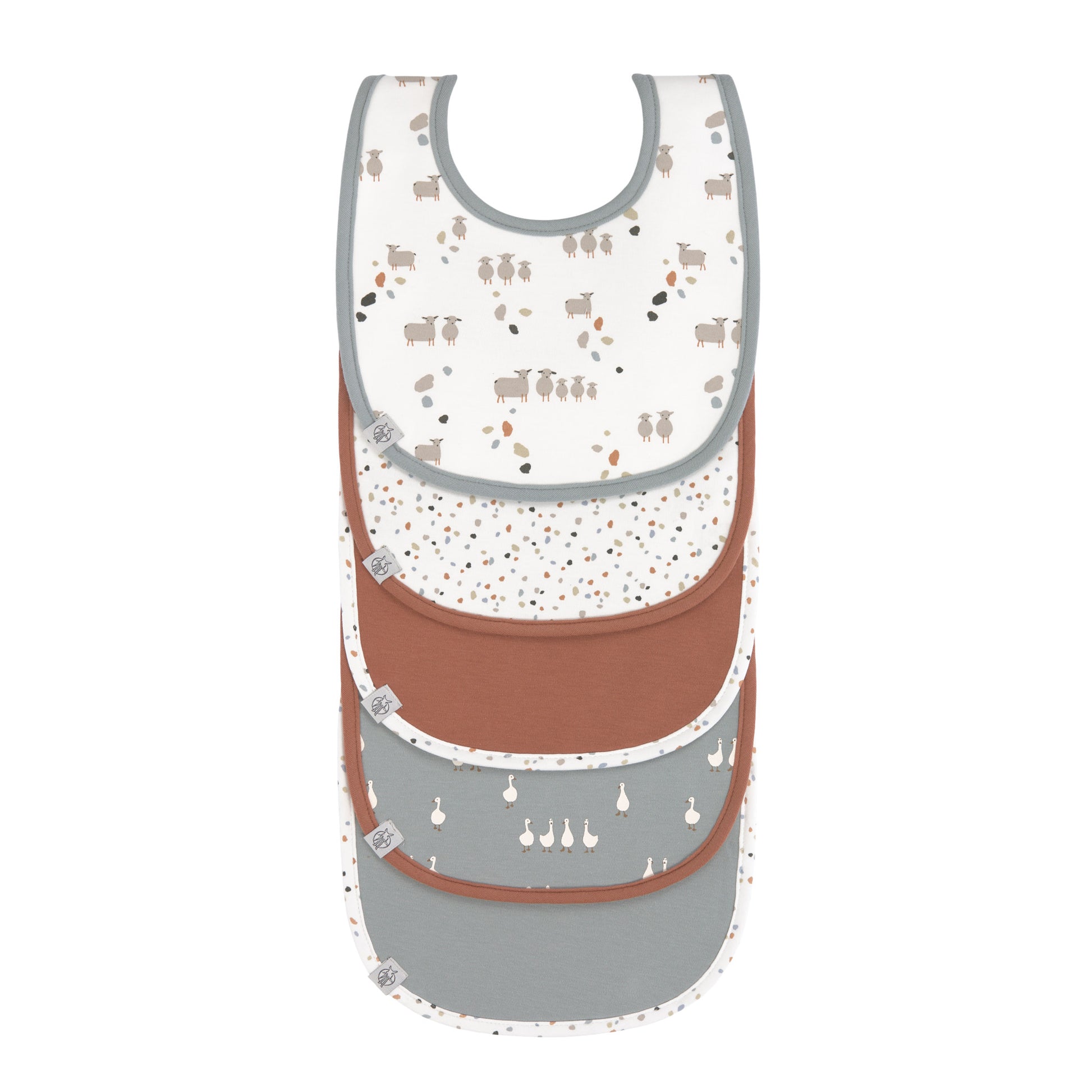 Met deze praktische sets van vijf slabbetjes uit de Tiny farmer Collection van LÄSSIG kunnen kleine lekkerbekjes hun eten morsen zonder spijt te krijgen - zelfs meerdere keren.